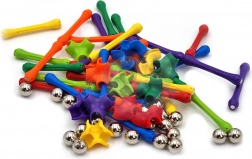 - 33 de bile metalice cu diametrul de 1,2 cm, 56 de tije din plastic cu lungimea de 6 cm, 21 de elemente de conectare