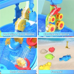 Descoperă masa de joacă ce îi distrează pe copii atât în interior, cât și afară. Datorită construcției pe 3 niveluri, micii exploratori pot turna apă în rezervorul superior, pot urmări cascada care curge în bazinul inferior și pot pune în mișcare moara de apă. Masa este ideală și pentru joaca cu nisip – obișnuit sau cinetic.