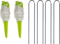- Construcție stabilă: ramă din oțel, corzi și țăruși de sol