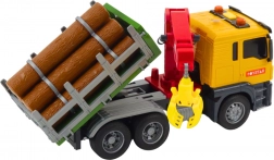 Camion realist pentru transportul lemnului, la scară 1:14, care va încânta micii fani ai utilajelor de construcții. Oferă o macara funcțională pentru încărcarea și descărcarea buștenilor, efecte luminoase și sonore (claxon, mers înapoi, alarmă) și execuție durabilă din plastic de calitate. Copiii își exersează motricitatea fină, înțeleg principiile utilajelor și se bucură de ore de distracție.