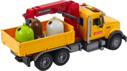 Acest camion de gunoi cu sortare transformă ecologia în distracție. Copiii pot, cu ajutorul brațului mobil al macaralei, să ridice și să coboare containerele, să pornească sunetul motorului, mersul înapoi și claxonul și să aprindă girofarurile intermitente – totul pentru o experiență realistă a muncii serviciilor municipale.