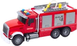 Acest autovehicul de pompieri 1:14 realizat în detaliu îi introduce pe copii în lumea salvatorilor. Pe acoperiș se află un furtun flexibil, iar după umplerea rezervorului este suficient să apăsați pompița – furtunul chiar stropește cu apă. Butoanele de pe cabină pornesc girofarurile intermitente și sunetele realiste (sirena, funcționarea motorului, claxonul), astfel încât fiecare misiune pare o acțiune adevărată.