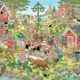 Îndrăgitul puzzle din seria Jan van Haasteren te poartă la un festival de vară trăsnit, unde mereu se întâmplă ceva. Stilul tipic de benzi desenate, plin de personaje, situații haioase și detalii ingenioase, îți garantează că nu te vei plictisi în timpul asamblării. Fiecare piesă se potrivește perfect la locul ei și dezvăluie o scenă viu colorată, plină de energie.