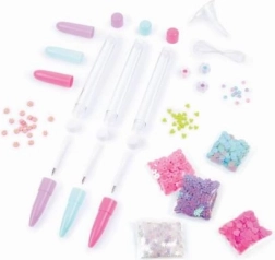 Cu acest set creativ, copiii vor realiza până la trei pixuri plutitoare originale, în care sclipiciul și iconițele tematice plutesc elegant în timpul scrisului. Datorită pâlniei și tăviței incluse, umplerea este simplă și curată. Apa nu este inclusă în pachet.