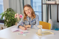 Instrucțiunile pas cu pas îți arată trei stiluri, sau poți experimenta și crea propriul design. Setul susține motricitatea fină, imaginația și transformă temele pentru acasă într-un ritual mai distractiv.