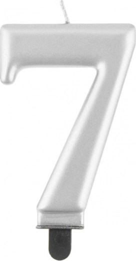 Această lumânare argintie pentru tort, modelată în forma cifrei șapte, este un accesoriu ideal pentru aniversări sau alte ocazii speciale.