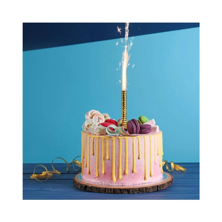 Fântână pentru tort cu lungimea de 12 cm, ideală pentru momente festive precum zile de naștere, petreceri pentru copii și petreceri tematice. Oferă un spectacol strălucitor și de neuitat timp de 45 de secunde.