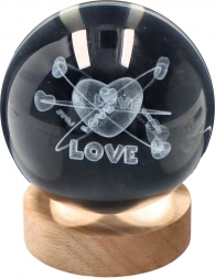 Elegantă lampă sferică din cristal cu motivul Love, cu diametrul de 6 cm, creează o iluminare ambientală delicată, cu un consum de 1,5 W. Ideală ca decorațiune pentru dormitor, living sau birou. Certificare CE pentru o utilizare sigură și fără griji.