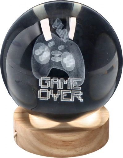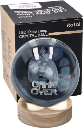 Lampă de joc cristalină – sferă de 8 cm cu consum de 1,5 W și declarație CE. Lumină ambientală stilată pentru setup de gaming și interior modern.