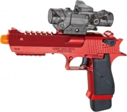 Pistolul electric pentru copii îmbină un aspect modern cu funcționalitate practică. Datorită modului complet automat, este suficient să apeși trăgaciul și ritmul jocului crește imediat. Carcasa din plastic rezistent și mânerul confortabil oferă o priză bună chiar și în sesiuni mai lungi; schema roșu‑negru și vizorul optic imitativ detașabil adaugă jucăriei un stil atractiv.