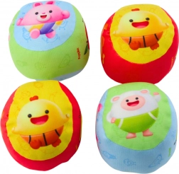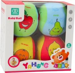 Set distractiv cu patru mingi colorate pentru cei mai mici, cu vesele motive cu fructe. Material moale și sigur, ideal pentru primele aruncări, prinderi și rostogoliri. Construcție ușoară, blândă cu copiii și mediul înconjurător, iar susținerea dezvoltării motricității și recunoașterii culorilor fac din acest set o alegere excelentă pentru joaca acasă și în aer liber.