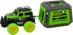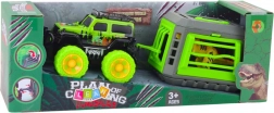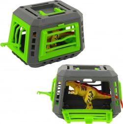 Mașina de teren cu cușcă și dinozaur este o jucărie captivantă care îi poartă pe copii în lumea aventurilor și a expedițiilor preistorice. Designul vehiculului, cu roți mari și colorate, este pregătit pentru misiuni de salvare sau expediții după dinozauri. În partea din spate a mașinii se află o cușcă în care este plasată o creatură cu aspect periculos, pregătită pentru transport în siguranță.
