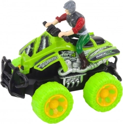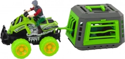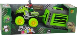 Setul include nu doar un quad robust cu cușcă detașabilă, ci și o figurină de șofer cu cască de protecție și o figurină de dinozaur, care împreună creează o scenă coerentă, gata de joacă imediat după despachetare.