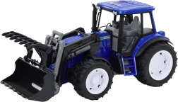 Acest tractor albastru la scară 1:10 impresionează prin cabina detaliată și roțile mari pentru o deplasare stabilă. Cupa frontală funcțională se poate ridica și coborî cu ușurință, susținând scenarii realiste de la fermă sau șantier.