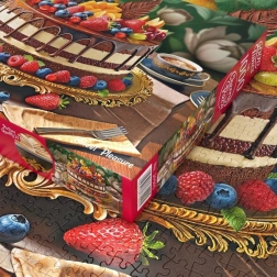Descoperă farmecul asamblării cu puzzle-ul Cherry Pazzi cu motiv de tort dulce. Datorită celor 1000 de piese, oferă combinația ideală de provocare și relaxare, potrivit pentru seri liniștite sau momente petrecute împreună cu familia. Printul de calitate și decupajul precis garantează că piesele se îmbină perfect, iar imaginea finală se remarcă prin culori vii.