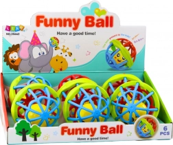 Descoperiți o minge senzorială pentru sugari distractivă și stimulativă, care susține dezvoltarea naturală a copilului. Materialul din cauciuc moale și elastic este delicat cu gingiile și mânuțele, permițând strângerea, prinderea și ocazionalul ros. Datorită texturilor diverse și culorilor puternice, mingea stimulează tactilul, văzul și auzul.