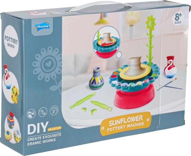 - Roată de olărit, 3× lut (în total 600 g), 12× culoare, 2× pensulă, 2× unealtă de modelare, măsură, cablu USB, șorț