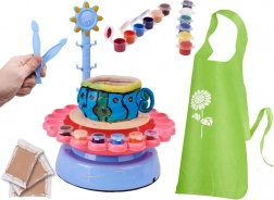 Setul conține o roată de olărit atrăgătoare vizual, care este destinată modelării lutului și decorării.