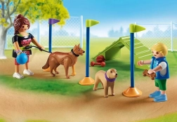 Intră în lumea agilitate pentru câini cu setul colorat PLAYMOBIL myLife. Copiii pot ghida cățeii peste obstacole, pot exersa slalomul și săriturile prin cerc și își pot inventa propriile trasee de concurs. Datorită echipării bogate și figurinelor mobile, jocul este fluent, distractiv și de fiecare dată diferit.