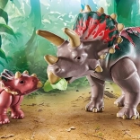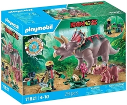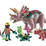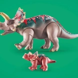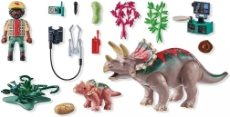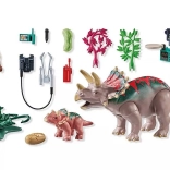 Pornește într-o expediție în preistorie alături de familia triceratops. Figurinele realiste ale dinozaurului și puiului, figurina cercetătorului și accesoriile detaliate (plante, ouă, instrumente de cercetare) le permit copiilor să creeze propriile povești, să observe comportamentul dinozaurilor și să învețe prin joc. Setul include și un card de cunoștințe despre dinozauri pentru și mai multe curiozități.
