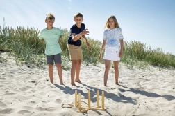 Aruncarea inelelor din frânghie pe țărușii numerotați dezvoltă coordonarea mână–ochi, concentrarea și competiția sănătoasă pentru copii și adulți.