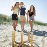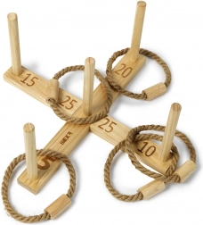 Jocul de aruncare a inelelor RING TOSS FAMILY este ideal pentru distracție în aer liber și antrenarea preciziei. Inelele din frânghie rezistentă și baza din lemn stabilă, cu țăruși numerotați, asigură punctare corectă și ore întregi de competiție pentru copii și adulți. Datorită dimensiunilor compacte, îl puteți lua ușor în grădină, la plajă sau în excursie.