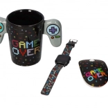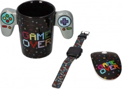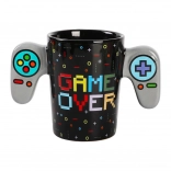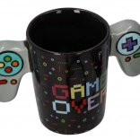 Bucură-te de băutura preferată cu un strop de nostalgie de gaming. Această cană ceramică neagră cu motivul GAME OVER oferă un design neobișnuit cu două mânere în formă de controllere și butoane colorate. Aspectul amuzant este completat de prinderea confortabilă și de dimensiunile practice pentru utilizarea zilnică.