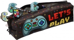 Penarul practic cu un singur compartiment și design de gaming va încânta orice fan al jocurilor video. Dimensiunile compacte 19 × 6 × 5 cm încap ușor în rucsac, iar fermoarul solid și execuția de calitate garantează durabilitate îndelungată. Imprimarea modernă cu controller și sloganul LET’S PLAY oferă echipamentului tău școlar un aspect original.