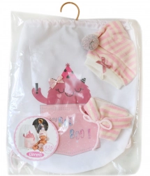 Acest set elegant este alcătuit din două piese de îmbrăcăminte și un rucsăcel practic, care oferă păpușii un aspect la modă. Fabricat cu grijă și dragoste în Spania, garantând calitate înaltă și originalitatea produsului.