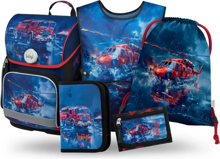 Setul Baagl 5 Ergo salvatori oferă un echipament complet pentru școlari, având în vedere sănătatea și confortul. Ghiozdanul ergonomic este dotat cu spate modelat anatomic și bază întărită, potrivit pentru copii încă din clasa I. Datorită sistemului dorsal glisant și bretelelor complet ajustabile, se adaptează perfect conformației copilului.