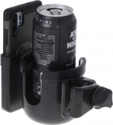 Acest suport este adecvat pentru diferite tipuri de sticle, bidoane, termosuri și telefoane. Cele patru 'urechi' flexibile asigură o fixare sigură a băuturilor fără teama de vărsare. Laturile deschise permit accesul facil la conținut. Compartimentul pentru telefon vă permite să aveți dispozitivul mereu la vedere, astfel nu veți rata niciun mesaj important.