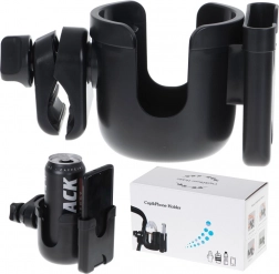 Suportul pentru sticlă și telefon este alegerea ideală dacă doriți să aveți băutura și telefonul mereu la îndemână. Universalitatea și montajul ușor îl fac un ajutor indispensabil pentru părinții în deplasare. Este proiectat astfel încât să se potrivească atât pe cărucior, cât și pe bicicletă sau de exemplu pe un cadru de mers.