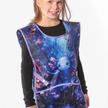 Şorţul stilat pentru copii cu motiv axolotl este ideal pentru şcoală, grădiniţă şi cluburi. Suprafaţa rezistentă şi lavabilă se curăţă uşor, astfel că nu trebuie să vă temeţi de culori, apă sau dezordine în timpul creaţiei. Datorită celor două buzunare, pensulele, creioanele sau laveta vor fi mereu la îndemână.