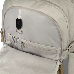 Rucsacul are trei compartimente separate, organizer interior și buzunar căptușit pentru laptop de 15 inci sau tabletă. Fabricat din material reciclat, impermeabil, este de asemenea dotat cu elemente reflectorizante pentru o vizibilitate mai bună a copilului în condiții de lumină redusă.