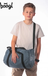 Geantă sport Hoop Dust Blue: Ușoară și pliabilă, cu o capacitate de 5 kg și un volum de 22 l. Dotată cu bandulieră ajustabilă și buzunar integrat în care se poate împacheta geanta cu ușurință. Fabricată din material reciclat, adaptabilă pentru călătorii.
