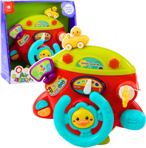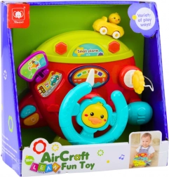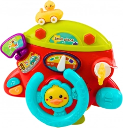 Panou de bord interactiv pentru avion are tot ce are nevoie micul tău pilot – volan, cheie, butoane funcționale, manetă pentru schimbarea direcției și o cheiță miniaturală. La apăsarea butoanelor, jucăria emite sunete vesele, melodii și efecte luminoase care încurajează dezvoltarea senzorială a copilului.