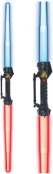 Sabia este echipată cu efecte luminoase și sonore, care se activează la pornire. Aceste efecte, alimentate de bateriile incluse, permit crearea unor scene de joc și mai captivante și electrizante. Mânerul din plastic durabil pare tehnologie din viitor, în timp ce lama telescopică se extinde lin și strălucește în culorile roșu și albastru. Este o alegere excelentă atât pentru joaca de zi cu zi, cât și pentru aventurile galactice costumate.
