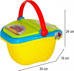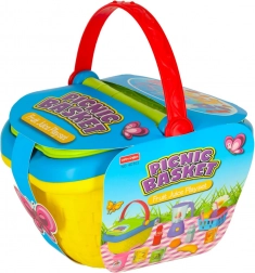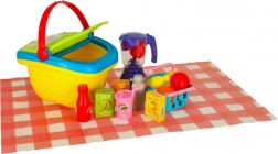 Descoperă lumea jucăușă a picnicurilor cu acest set pentru copii: coș colorat, fructe din plastic, cutiuțe de suc, sticluțe și pahar pentru shake. Ideal pentru jocuri de bucătărie, magazin și picnic în familie. Susține creativitatea, cooperarea și motricitatea fină, este ușor, rezistent și ușor de transportat.
