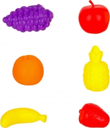 Setul de fructe din plastic, în culori vii, este sigur pentru mâinile copiilor și ajută la învățarea culorilor, formelor și denumirilor fructelor.