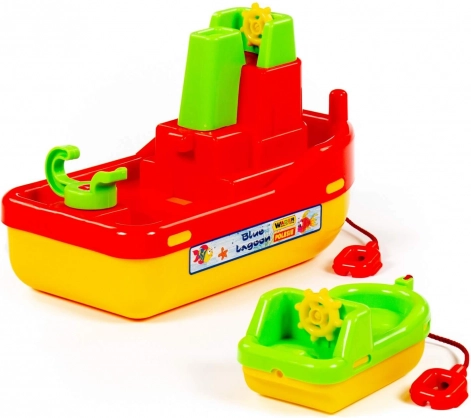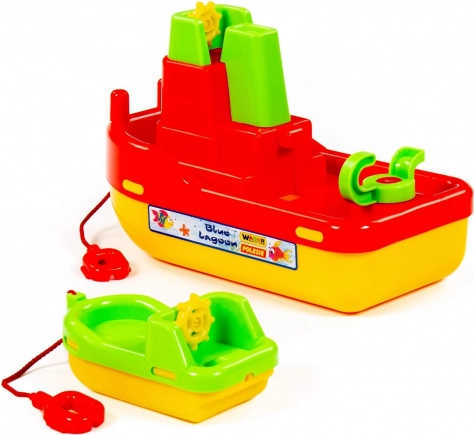 Descoperă remorcherul Laguna cu bărcuță mică – un set acvatic colorat care îi va încânta pe micii căpitani. Construcția robustă din plastic de calitate garantează o durată lungă de viață, iar designul sigur este ideal pentru joaca în apă. Datorită dimensiunilor compacte, jucăria se transportă și se depozitează ușor.