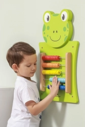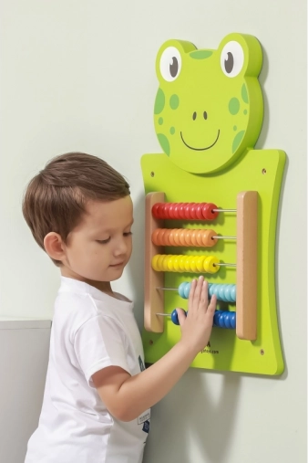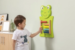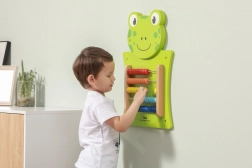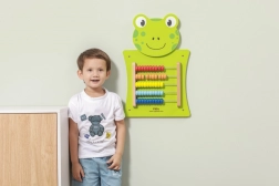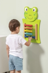Acest abac-broscuță îmbină estetica jucăușă cu învățarea practică. Cele cinci tije orizontale cu mărgele colorate îi încurajează pe copii să gliseze și să numere, exersând astfel motricitatea fină, coordonarea mână–ochi și gândirea logică. Montajul pe perete economisește spațiu și îl păstrează mereu la îndemână.