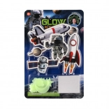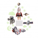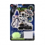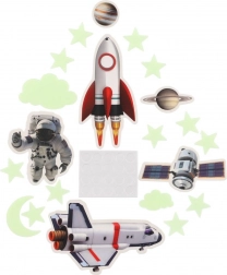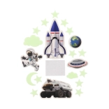 Transformă camera copilului într-o mică galaxie! Setul include stele, planete și alte motive spațiale luminoase, care, după expunere la lumină, strălucesc în întuneric și creează o atmosferă magică. Ideal pentru micii exploratori, ajută la relaxare înainte de somn și face spațiul mai primitor.