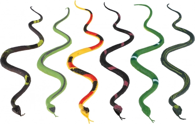 Descoperă setul de șerpi din plastic flexibili, cu lungimea de 23 cm. Mixul de specii diferite oferă multiple posibilități pentru joacă, colecționare și învățare despre natură. Șerpii au texturi re...