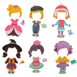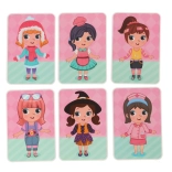 Set bogat de haine, coafuri și accesorii magnetice, împreună cu carduri‑model, oferă zeci de ținute și scene. Grozav atât pentru învățarea după model, cât și pentru creație liberă.