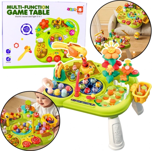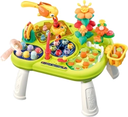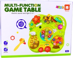 Masa oferă diferite funcții care stimulează curiozitatea și încurajează experimentarea. Include jocuri precum „prinde cârtița”, butoane interactive, flori colorate, elemente rotative, manete și angrenaje. Ajută copiii să înțeleagă cauza și efectul, învață mișcări precise ale degetelor și mâinilor. Este deci nu doar o sursă de distracție, ci și un suport pentru dezvoltarea cognitivă și manuală naturală.