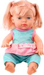 Păpușa drăgălașă bebeluș în complet moale turcoaz cu accente roz este alegerea ideală pentru copii care iubesc joaca de-a gospodăria. Expresia plăcută și ochii realiști adaugă jucăriei un farmec autentic, care cu siguranță va plăcea fiecărui copil.