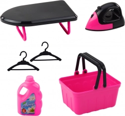 Pe lângă mașina de spălat, setul include fier de călcat, masă de călcat, coș pentru rufe și alte accesorii, care le permit copiilor să se joace de-a spălatul, călcatul și întinsul rufelor. Totul este sigur, realizat din materiale de calitate și în conformitate cu normele europene.