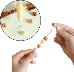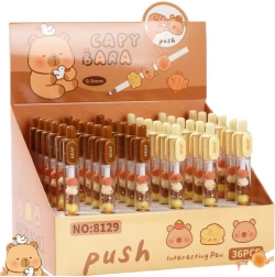 Pixul cu figurine de capibara nu este doar un instrument practic pentru scrisul zilnic, ci și un accesoriu drăguț care atrage atenția și îmbunătățește dispoziția. Figurinile de capibara sunt plasate într-o cameră transparentă a pixului și pot fi deplasate, rotite sau rearanjate după preferință. Mecanismul de acționare al minei este pe clic, ceea ce face pixul ușor de utilizat chiar și pentru cei mai mici.