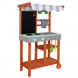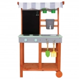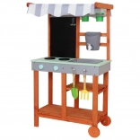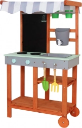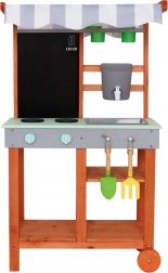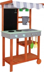 Această bucătărie durabilă și stabilă este special concepută pentru utilizarea în aer liber, pentru a rezista atât jocului activ, cât și capriciilor vremii. Bucătăria este fără margini ascuțite și construcția sa ergonomică este sigură pentru orice mic bucătar.