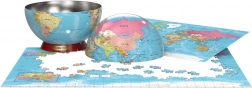 Puzzle-ul asamblat are dimensiunile de 48 x 33 cm și oferă o imagine captivantă a lumii cu elemente geografice detaliate. Datorită ambalajului său compact, se transportă ușor și este o alegere ideală pentru cadouri sau călătorii.